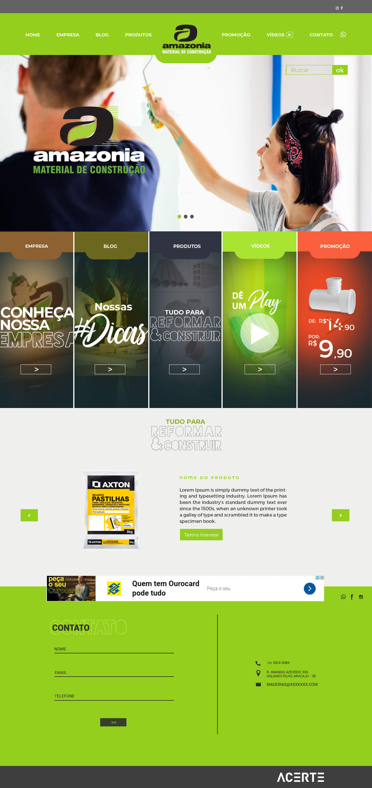 Inaugurada em 1994 a Amazônia Material de Construção, uma loja de departamento no segmento da construção, com profissionais treinados, voltados exclusivamente ao atendimento de excelência aos clientes.Com um mix de produtos cada vez mais diversificado, as melhores marcas em produtos para construção, reforma, decoração, ferramentas e utilidades para o lar. Buscamos O serviço atende as necessidades dos clientes proporcionando a eles: bom atendimento, preços justos, prazo, financiamentos, qualidade e variedade. O fortalecimento do grupo faz parte da essência do trabalho, tendo como foco a humanização e responsabilidade social, com colaboradores capacitados, fornecedores como parceiros, tornando o negócio viável através da fidelização dos clientes, além de fornecer produtos e serviços com qualidade para todas as classes, procurando servir com agilidade e flexibilidade no atendimento das necessidades dos nossos clientes.