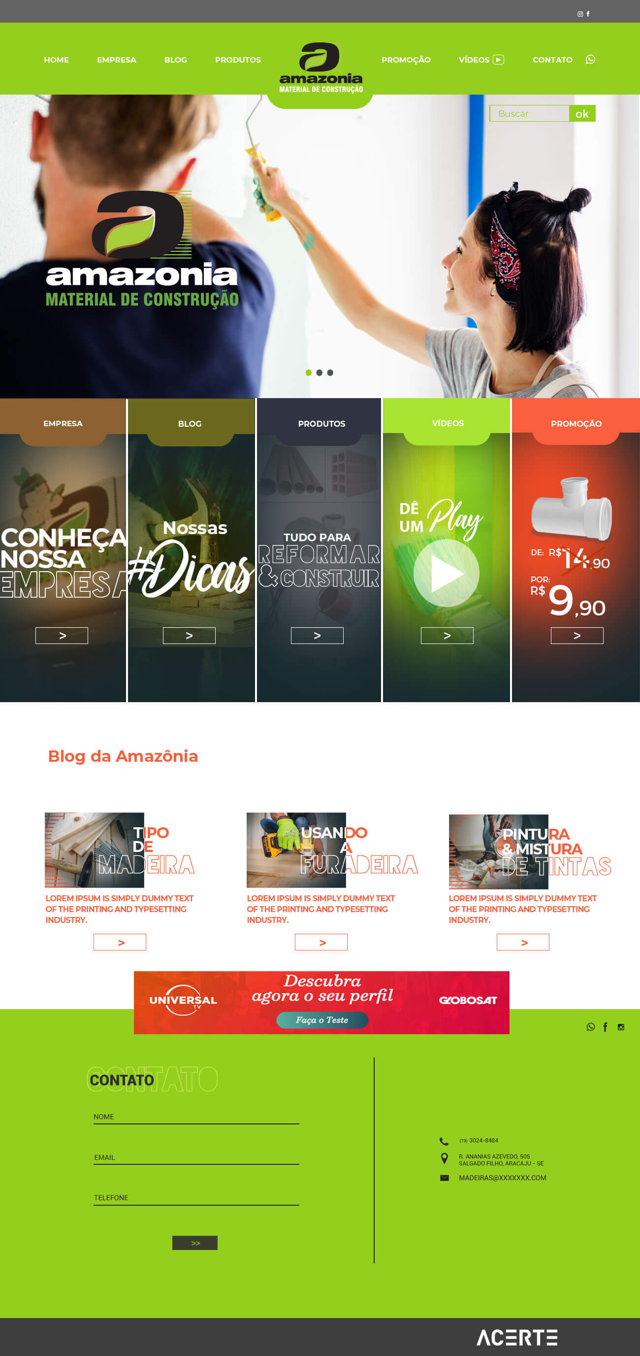 Inaugurada em 1994 a Amazônia Material de Construção, uma loja de departamento no segmento da construção, com profissionais treinados, voltados exclusivamente ao atendimento de excelência aos clientes.Com um mix de produtos cada vez mais diversificado, as melhores marcas em produtos para construção, reforma, decoração, ferramentas e utilidades para o lar. Buscamos O serviço atende as necessidades dos clientes proporcionando a eles: bom atendimento, preços justos, prazo, financiamentos, qualidade e variedade. O fortalecimento do grupo faz parte da essência do trabalho, tendo como foco a humanização e responsabilidade social, com colaboradores capacitados, fornecedores como parceiros, tornando o negócio viável através da fidelização dos clientes, além de fornecer produtos e serviços com qualidade para todas as classes, procurando servir com agilidade e flexibilidade no atendimento das necessidades dos nossos clientes.